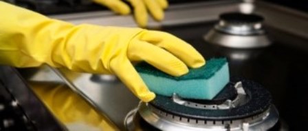 - Всю мебель на кухне: шкафчики, стол, столешницу, а также раковину и газовую плиту необходимо хорошенько промыть с использованием моющих и дизенфицирующих средств.